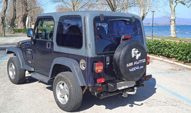 Jeep Wrangler TJ 4.0 Sport Hard Top originale, km 220.000, auto di non fumatore, interni in ottime condizioni, usata come terza auto, mai fuoristrada , ha ancora l'omologazione autovettura 4 posti, NON AUTOCARRO, una rarità, la versione ancora potente con 177 CV, la vera JEEP. Macchina affidabile e performante dotata di impianto GPL (consumo medio 6-7 km/lt), già iscritta A.S.I. con trascrizione sulla carta di circolazione, usufruisce del pagamento del bollo ridotto al 50% (euro 180), assicurazione euro 130 annui; è sempre stata rimessa al chiuso nel garage. E' dotata di aria condizionata, gancio traino (massa trainabile 2.000 kg), Kit tappetini Rugged Ridge anteriori e posteriori, copri sedili anteriori e posteriori Bestop Jeep TJ (la tappezzeria è perfetta, le fodere sono state messe solamente per preservarla), fari a led Daymaker, distanziali ruote, maniglie per facilitare la salita.