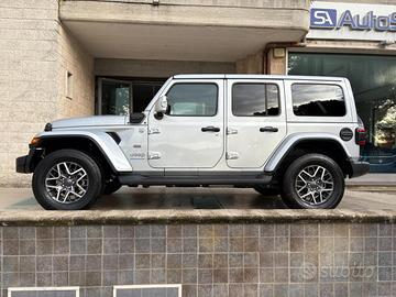 JEEP WRANGLER Unlimited 2.0 PHEV ATX 4xe Sahara Overland ANNO 2023 CON SOLI 45009 KM VETTURA IN ECCELLENTI CONDIZIONI FULL OPTIONAL NAVIGATORE SATELLITARE CON MONITOR TOUCH SCREEN-BLUETOOTH-CARPLAY/ANDROID AUTO-IMPIANTO AUDIO AMPLIFICATO-SENSORI DI PARCHEGGIO ANTERIORI E POSTERIORI-TELECAMERA ANTERIORE E POSTERIORE-VETRI POSTERIORI OSCURATI-INTERNI IN PELLE-SEDILI RISCALDABILI-VOLANTE IN PELLE MULTIFUNZIONE RISCALDABILE-CRUISE CONTROLL ADATT