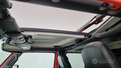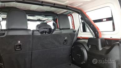 8 altoparlanti - Airbag laterali anteriori - Assali Dana Nuova Generazione - Cambio automatico a 8 rapporti - Cerchi in lega da 18" - Climatizzatore automatico - Comandi al volante - Controllo elettronico di stabilità (ESC) - Cover ruota scorta - Cristalli oscurati - Cruise control - Fari a LED (LED Premium Lighting Group) - Fendinebbia - Ganci traino posteriori - Griglia anteriore in tinta carrozzeria - Hard-top modulare in 3 parti in tinta carrozzeria - Hill Start Assist (Sistema di ausilio partenza in salita) - Impianto audio Premium Alpine - Keyless Go - Kit fumatori - Limitatore di velocità attivo - Luce indicatore di direzione su specchio - Luce interna LED - Luci diurne - Monitoraggio pressione pneumatici - Paraurti specifici Sahara ant. e post. - Parksense posteriore park assist system - Parkview telecamera anteriore - Passaruota in tinta - Pedane laterali con trama antiscivolo - Pedane laterali tubolari - Pneumatici All Season - Portabicchieri anteriori illuminati - Presa USB posti posteriori - Quadro strumenti con display multifunzionale a colori da 7" - Radio Uconnect