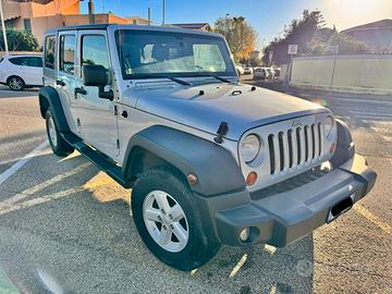 Jeep Wrangler Unlimited 2.8 CRD (diesel 177 cv) - 5 porte - Cambio Automatico - immatricolata 06/2009, 270000 km. Colore grigio metallizzato, Climatizzatore, Hard Top completamente rimovibile. Gomme 80%