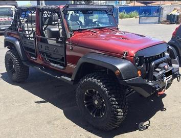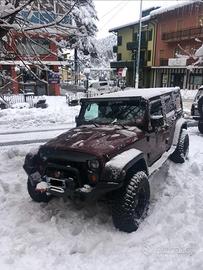 Modello: Jeep Wrangler Unlimited (versione 4 porte) Anno: 2007 Motore: Diesel Cambio: Automatico Km: 124000 Ottime condizioni generali (come da foto), regolarmente tagliandata e curata nessun lavoro imminente da fare. Revisione e manutenzione in ordine. La macchina é dotata delle seguenti dotazioni il tutto omologato a libretto: tetto rigido (hard top) a 45 gradi asportabile, pedane sottoporra, parafanghini, snorkel, verricello anteriore Warn 13500, paraurti anteriore e posteriore uso gravoso con cancelletto portaruota, bloccaggio dei differenziali posteriore ARB, pneumatici 35x12.50 r17 con cerchi in lega americani(compresa ruota di scorta), coppie coniche 4.88, kit rialzo + 5", ammortizzatori Fox, doppio serbatoio carburante con pompetta elettrica di travaso, barre a led con fari e stop a led, radio CB, idroguida con scatola sterzo rinforzata PSC e tanti altri optional inclusi. L'omologazione a libretto permette il montaggio anche del verricello posteriore e la possibilità del montaggio dei pneumatici 37x12.50 r17 con una larghezza complessiva della carreggiata di 2.16m Vettura allestita e pronta anche per lunghi viaggi Solo per chi é veramente interessato per maggiori informazioni o per visionare la macchina non esitate a conttatarmi.