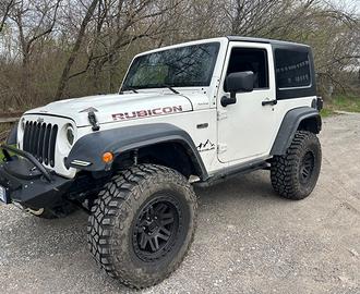 Vendo fantastica jeep Rubicon, assetto completo Fox, ponti dana44 rinforzati, blocchi ant/post, stacca barra elettrico, verricello,fari full led, cerchi antistallonamento più gomme 35 (non a libretto ma marcate con misura originale)gancio traino omologato, semiassi ant RCV performance… revisione appena effettuata. Eventualmente posso cederla con gomme, cerchi e paraurti originali a 22000 euro.