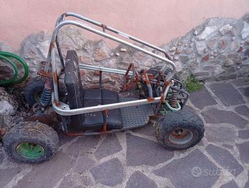 Kart artiguanale x bambini dai 4 ai 8 anni con ruote e pezzi di quaad da ultimareregalo anche motore motosegha a scoppio da applicare sopra al telaio.