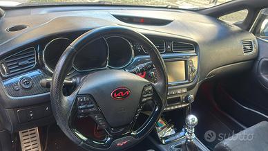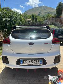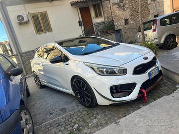 kia pro cee’d GT fine anno 2013. Serie limitata. Solo 70 pezzi destinati al mercato italiano (attualmente non si riescono a rintracciare più di 20 proprietari di questi esemplari in Italia, per cui è un’auto unica e rara) e 500 esemplari in tutta Europa. nNumero 375/500 , turbo benzina da 204cv originali. Sono state fatte le seguenti modifiche: mappatura stage 1 , la macchina adesso ha 250cv; dischi anteriori forati Zimmermann, tubi in treccia, spoiler posteriore originale, scarico semi diretto con aggiunzione di un catalizzatore 200 celle, aspirazione con filtro BMC a pannello, appena tagliandata da circa 100km. Full optional, tettuccio apribile , luci xeno e led auto regolabili , vetri anteriori oscurati al 25% (consentiti dalla legge), vetri posteriori oscurati di serie al 40% compreso di lunotto posteriori, cerchi originali da 18” originali, sedili Recaro in pelle e Alcantara riscaldabili , volante riscaldabile, clima bi zona, radio bt con navigatore di serie ,comandi ,al volante (limitatore di velocità e cruise control inclusi), luci ambiente rosse, bagagliaio super capiente per la sua tipologia. il motore ha la distribuzione a catena quindi zero sbatti . La macchina non è mai stata incidentata. L’ho sempre trattata da amatore , ma comunque ha qualche segno indifferente sulla carrozzeria dovuta dal tempo. secondo proprietario ATTENZIONE: VALUTO SCAMBIO SOLO ED ESCLUSIVAMENTE CON HONDA CIVIC 1.5 BENZINA 2017-2021. INVIARE UN WHATSAPP IN CASO DI MANCATA RISPOSTA IN CHIAMATA