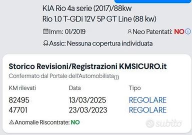 Bellissima Kia Rio del 2019 in ottime condizioni generali Motore 1.0 turbo benzina da 120 cv con soli 84 mila km (vedi anche foto revisioni) Allestimento top di gamma GT-Line Questo modello con questo allestimento è davvero introvabile, solo 3/4 auto come questa, controllare per credere. Auto UNICO PROPRIETARIO Tantissimi optional della versione GT-Line tra cui: - Sedili misto pelle - Paraurti sportivi - Doppio terminale di scarico - Luci diurne e stop a LED - Volante sportivo con base appiattita in pelle traforata - Apple CarPlay/Android Auto - Navigatore - Cerchi sportivi da 17" - Retrocamera con sensori di parcheggio ecc ecc N.B. il prezzo più basso rispetto alle concorrenti è dovuto a qualche graffio di carrozzeria nei due lati, mentre motore e meccanica sono perfetti in tutto e per tutto. Possibilità di provarla con meccanico di fiducia Nessuna sorpresa, massima trasparenza!!! Possibilità (NESSUN OBBLIGO) di finanziamento con o senza anticipo Prezzo AFFARE