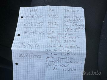 Chilometraggio: 104000 Condizioni: usato Immatricolazione: 07/2013 Tipologia: 4/5-Porte Carburante: Diesel Tipo di cambio: Manuale ABS, Airbag, Airbag Passeggero, Alzacristalli elettrici, Autoradio, Bluetooth, Bracciolo, Cerchioni in acciaio, Chiusura centralizzata telecomandata, Climatizzatore, Fendinebbia, Filtro antiparticolato, Isofix, Sedile posteriore sdoppiato, Servosterzo, Specchietti laterali elettrici, USB, Vivavoce, Volante multifunzione - UNICO PROPRIETARIO - PER NEOPATENTATI - PROSSIMA REVISIONE 06/2027 - BOLLO PAGATO FINO AD APRILE 2026 - ULTIMO TAGLIANDO ESEGUITO A LUGLIO 2025 A KM 100.000 Rivenditore GENERAL CAR SRL