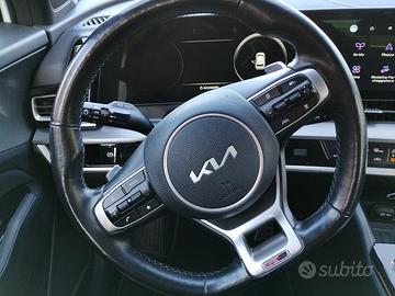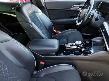 Sedili anteriori regolabili elettricamente, Sedili anteriori e posteriori riscaldabili, Sedile passeggero regolabile in altezza, Bracciolo anteriore con vano portaoggetti, Volante riscaldabile, Sedili posteriori abbattibili e frazionabili con modulo 40:20:40, Supporto lombare elettrico lato guida a due direzioni, Climatizzatore automatico tri-zona, 1 anno di aggiornamenti mappe Over-the-air gratuiti, 7 anni di traffico Kia Connect, Mood Lamps, Pedaliera in alluminio, Supervision cluster da 12,3", Paddles al volante, Smart Key con Start Button, 7 anni di garanzia / 150.000 km (Secondo disposizioni della Casa), Predisposizione gancio traino, Predisposizione ISOFIX, Kit di riparazione pneumatici, Linea di cintura satinata, Gancio rete bagagliaio, Comandi audio al volante, Kia Navigation System DAB con schermo touchscreen da 12,3", Apple Car Play/Android Auto, Wireless phone charger, Comando del cambio Shift by Wire, Cerchi in lega da 18" disegno GT-line, Porta USB anteriore, Porta USB vassoio anteriore, Bluetooth con riconoscimento vocale, Griglia anteriore in high glossy black, Retrovisori esterni con indicatori di direzione integrati a LED, Retrovisori Esterni Ripiegabili Elettricamente, Retrovisori esterni riscaldabili e regolabili elettricamente, Barre longitudinali al tetto, Luci di posizione a LED, Fari posteriori a LED, Fari fendinebbia a LED, High Beam Assist (HBA), Sensore crepuscolare, Luci diurne anteriori a LED,
