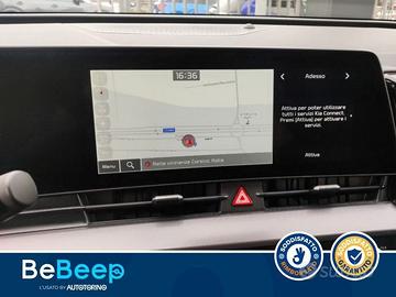 La vettura è completa nella dotazione optional di 1 anno di aggiornamenti mappe Over-the-air gratuiti, 7 anni di garanzia / 150.000 km (Secondo disposizioni della Casa), 7 anni di traffico Kia Connect, Airbag a tendina anteriori, Airbag a tendina posteriori, Airbag centrale tra guida e passeggero, Airbag laterali anteriori, Airbag lato guida, Airbag lato passeggero, Alzacristalli elettrici anteriori e posteriori - funzione auto up/down & safety anteriori, Barre longitudinali al tetto, Blocco portiere per bambini, Bluetooth con riconoscimento vocale, Bracciolo anteriore con vano portaoggetti, Cavo di ricarica d'emergenza con ICCB (5m) con presa Schuko, Cerchi in lega da 18"", Climatizzatore automatico bi-zona, Comandi audio al volante, Comando del cambio Shift by Wire, DBC, Drive Mode Select, Driver Attention Warning (DAW), ESC, Far