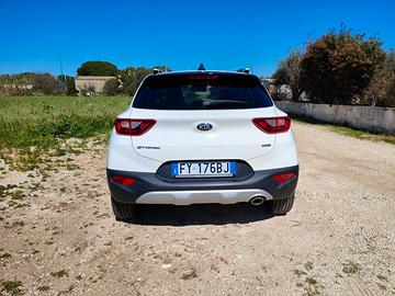 Vendo Kia Stonic nell’allestimento top di gamma Energy per passaggio a categoria diversa, con motore turbo benzina da 120 CV, in versione bicolore bianca/tetto nero.