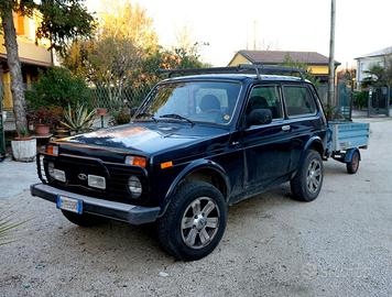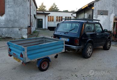 Lada Niva 1.7 4x4 con impianto GPL, bombola sostituita a Luglio 2023 (prossima sostituzione Luglio 2033). Lievi danni alla carrozzeria. Gomme posteriori nuove, anteriori con 10000 Km. Presente gancio traino omologato e carrello appendice ELLEBI.