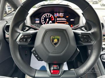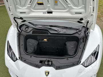 Additional storage compartment under front center console (dimension fitting most mobile phones), Multifunction steering wheel in smooth leather, Rooflining and sun visors in technical fabric, - Engine, - Lamborghini Doppia Frizione (LDF), - Sound, 2-seater coupé, 3-points seat belts with pre-tensioner, force limiters and height adjustment, 4 valves per cylinder, Aerodynamic design integrated in body shape, Autolock, Bosch MED 17 engine management system, Collapsible steering column, Complete underbody panelling with integrated NACA air intakes for cooling, Dark tinted glass in windows and windscreen, Deformation zones at front and rear with integral aluminium alloy bumpers, Door storage compartments, Double wishbone independent suspension with anti-roll bars on front and rear axles-passive dumpers, Drive-by-wire concept, Electrically adjustable, heating and folding side mirrors with door panel single-arm attachment, Emission standard EU6, Floor mats with nubuk edge, Flush-mounted exterior door handles, FSI (Fuel Stratified Injection) technologie, High quality noise insulating carpeting, Lamborghini Doppia Frizione (LDF) 7-speeds dual clutch gearbox, Launch control function (thrust mode in CORSA and race start in SPORT), Light alloy construction, Lightweight body in aluminium, Modular wiring harness concept, MPI (Multi-Point Injection) technologie, Remote central locking (incl. luggage compartment), Side head and thorax airbags, Side impact bars in the door structure, Silver painted brake calipers, Sport seats with electrically adjustable backrest and height and length manual adjustments, steering wheel cover, dashboard, center parts of the seats and door panels, NESSUN OBBLIGO FINANZIARIO - PREZZO REALE