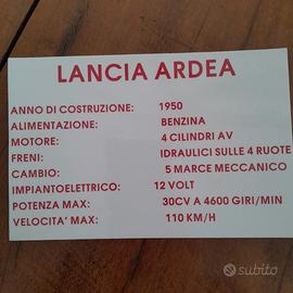 Vendesi Lancia Ardea del 1950 con pezzi di ricambio originali.Condizioni perfette come si evince dalle foto.Targa originale Roma. Per contatti SOLO WHATSAPP numero 3442966892