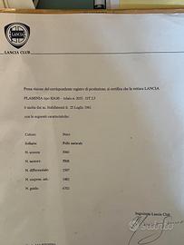 Omologata Registro Storico Lancia, ASI targa oro (con anche CRS) e iscritta al Registro Torung Superleggera.