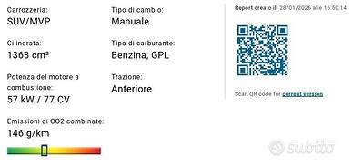 1.4 BENZINA/GPL , 57 KW con i consumi ridottissimi, con 7 litri di GPL si percorrono 100 chilometri.
