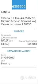 • VersioneYpsilon 0.9 TwinAir 85 CV 5 porte Metano Ecochic Gold