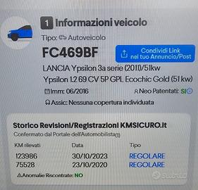 Lancia ypsilon ecochic 20161.2 GPL 140 mila kmCondizioni strepitoseClimatizzatore Vetri elettrici Gommata nuovaAntifurto block shaft Stereo bluetooth Disponibile in sede a Modugno