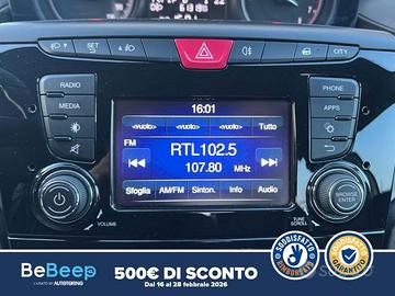 La vettura è completa nella dotazione optional di AGGANCIO UNIVERSALE SEGGIOLINO BAMBINI (ISOFIX), AIR BAG LATERALI PROTEZIONE TESTA, Appoggiatesta posteriori, CERCHI STYLE, CLIMATIZZATORE MANUALE CON FILTRO ANTI POLVERE, COMANDI RADIO UCONNECT AL VOLANTE [8 TASTI], EBD, ESP, KIT GONFIAGGIO RIPARAZIONE PNEUMATICI (FIX & GO), LIBRETTO USO E MANUTENZIONE IN ITALIANO, MANIGLIA APPIGLIO ANTERIORE LATO PASSEGGERO E MANIGLIE APPIGLIO POSTERIORI, SEDILE POSTERIORE CON SCHIENALE SDOPPIATO 4 POSTI 50/50, SPECCHI RETROVISORI ESTERNI CON COMANDO ELETTRICO E DISAPPANNAMENTO, Scarico cromato, Sedile guida regolabile in altezza, Sensori di parcheggio, TELECOMANDO APERTURA / CHIUSURA PORTE, TPMS [Tyre Pressure Monitoring System], Targhetta assistenza, UCONNECT RADIO 5"" TOUCHSCREEN CON BLUETOOTH, Volante