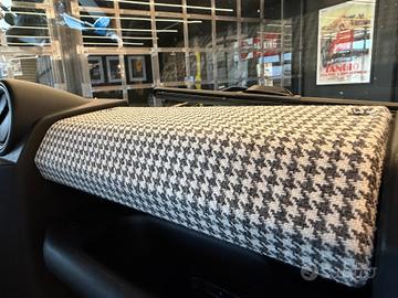 Totalmente ricondizionata e personalizzata dal nostro team "The world's style" in un attualissimo color Argento ghiaccio metallizzato con tetto e cerchi in bianco abbinati ad un interno personalizzato con sedili sportivi in pregiata pelle nera e tessuto Pied-de-poule