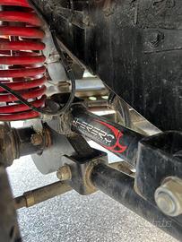Assetto mud rock Herero +11 comprensivo di puntoni snodabili e barre di sterzo rinforzate con pistommy sempre herero basta andare sul sito di herero per rendersi conto .blocco anteriore e autobloccante anteriore alberi doppia crociera itaLgiunti , motore 200 con testata rifatta da 5000 km tagliando appena fatto , turbina saito con radiatore intercooler maggiorato, semiassi anteriori completi di omocinetico rinforzato ascroft semiassi posteriori rinforzati ascrhoft , coppie coniche ridotte ascroft, vetri elettrici , verniciatura completa fatta meno di 1 anno , cruscotto in alluminio con stereo2 din e monitor, l'interno è stato rifatto completamente ed è stato messo l' insonorizzante, modifica paratia centrale così da poter posizionare i sedili più indietro, roll cage completo , parafanghi anteriori in alluminio rinforzati , verricello anteriore warn con cavo tessile, staffa per verricello posteriore,blocca sterzo block system , frizione lof rinforzata rifatta da 5000 km, gomme 35/12.50/15 al 80% tutto rigorosamente omologato a libretto tra cui monte misure di gomme anche le 37 , primo contatto via messaggio, sono aperto a proposte di scambi e permute con auto di pari valore o con differenza a mio carico.