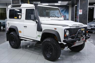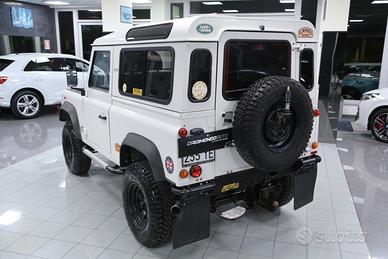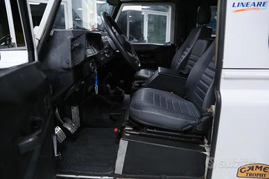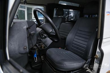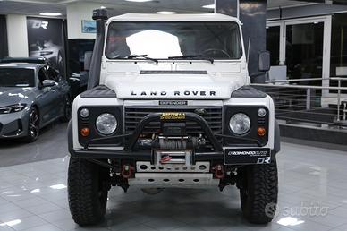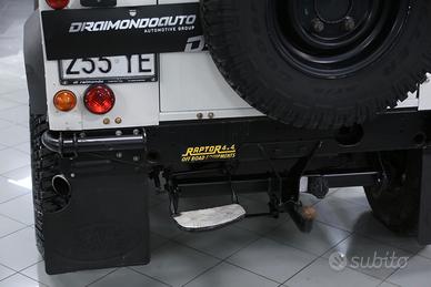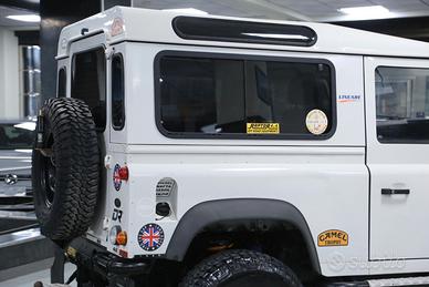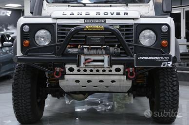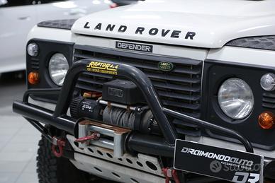 Defender con verricello elettrico, sospensioni rialzate, vetri posteriori oscurati, quattro ruote motrici, gancio di traino, ruota di scorta, autoradio, pedaliera in alluminio, bracciolo anteriore centrale, ecc.