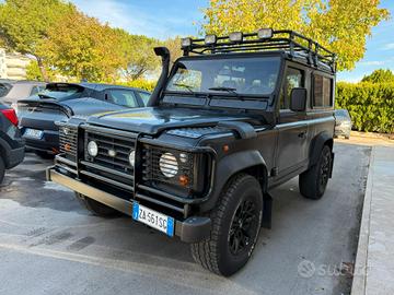 Defender 90 serie 300 con 125000 Km, ex automezzo Guardia di Finanza reimmatricolato a novembre 2021, restaurato ed efficientato in tutte le sue parti,dotato di portapacchi originale Land Rover, gancio traino, inverter, cerchi in lega, interni in pelle, audio Marshall