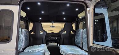 Splendida Defender 90 TD5, auto in perfette condizioni, batteria nuova, tagliando, freni, 4 Cerchi in lega nuovi, pneumatici nuovi, distanziali, cancello portaruota, kit fari led anteriori e posteriori, sedili nuovi in pelle, riscaldabili e supporto lombare. Prima della consegna, distribuzione e ammortizzatori nuovi