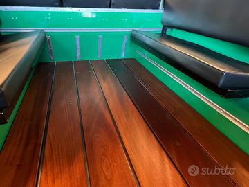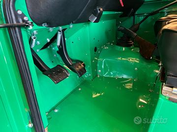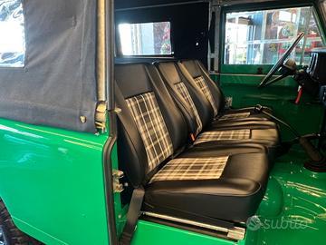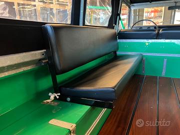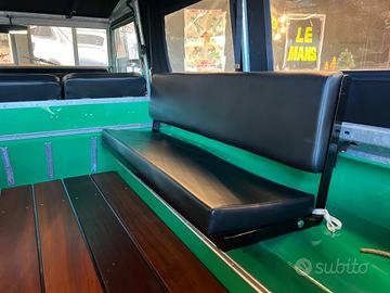 Soft top in nero , parabrezza piatto pieghevole ed una configurazione di tre sedili anteriori sportivi in pelle nera abbiata a tessuto tartan e panche rivolte lateralmente nella parte posteriore lo rendono comodamente fruibile da 9 passeggeri.