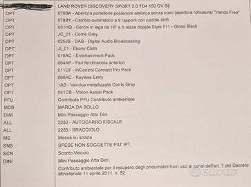 Vendo Discovery sport autocarro n1 2000cc 150cv del 2019 la macchina non presenta nessun problema meccanico o estetico, pronta per l’uso.