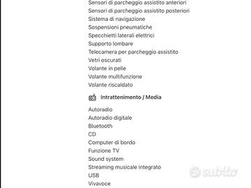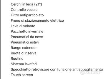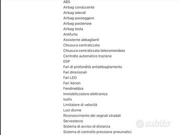 TOP SALES AUTOMOTIVE GROUP . VISITA NS SITO WEB TOPSALESAUTOMOTIVE.COM X NUOVE OFFERTE ( 150 AUTO DISPONIBILI ) VISITA NS SHOP AUTO SUBITO .IT X NUOVE OFFERTE ( 35 AUTO DISPONIBILI ) . LAND ROVER RANGE 3.0 TD V6 . 249 CV . SUV PERFETTA . NESUN INTERVENTO DA ESEGUIRE . TAGLIANDATA . TAGLIANDI CERTIFICATI. FULL OPTIONAL . ALLEGATI DATI COMPLETI .NB . ( LEGGI TUTTO ) . PER OGNI INFORMAZIONE E VISIONE GRADITO APPUNTAMENTO CONTATTARE ORARI UFFICI . O LASCIARE VS RECAPITO TELEFONICO O E-MAIL SARETE RICONTATTATI DA NS STAFF COMMERCIALE . SALUTI . TOP SALES AUTOMOTIVE GROUP . ABS Airbag laterali Antifurto Chiusura centralizzata Fendinebbia Pretensionatore cinture Airbag per la testa Fari anteriori allo xeno (a scarica di gas) Riconoscimento segnali stradali Monitoraggio angolo cieco Fari adattativi Riconoscimento pedone Isofix Chiusura centralizzata senza chiave Immobilizzatore elettronico Sistema di chiamata d'emergenza Sistema di riconoscimento della stanchezza Trazione integrale Airbag guida Airbag passeggero Chiave con transponder Controllo elettronico della stabilità Immobilizzatore Controllo elettronico della trazione Airbag per le ginocchia Controllo automatico adattivo della velocità Fari anteriori a LED Avviso del cambio di corsia Frenata automatica di emergenza Airbag posteriore Controllo elettronico della corsia Luci diurne LED Sistema di controllo pressione pneumatici Sistema di visione notturna Luci diurne Appoggiatesta posteriori Climatizzatore Correttore assetto fari Lavatergifari Retrovisori elettrici termici Ricircolo aria Sedili regolabili elettricamente Sospensioni autoregolabili Vetri elettrici anteriori Volante regolabile Interni in materiale pregiato Vernice metallizzata Sensore luci Hill Holder Controllo automatico clima Sedili ventilati Sospensioni pneumatiche Volante in pelle Leve al volante Interni in pelle Cambio automatico Controllo automatico velocit