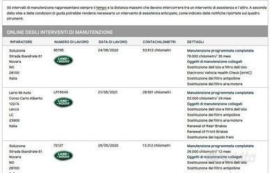 Tagliandi effettuati regolarmente presso LAND ROVER :