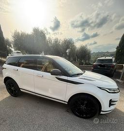 Range Rover Evoque SE 11/2021 con 151.000 km, unico proprietario, bianca con tetto nero e pacchetto black, R-Dynamic, sedili in pelle regolabili, cerchi neri da 21.
