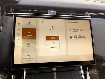 DEK:[8050408] EQUIPAGGIAMENTI DI SERIE : 6 airbags (Velar) - Adaptive Cruise Control con Steering Assist - All Terrain Progress Control (ATPC) - Android Auto - Apertura portellone posteriore elettrica (apertura/chiusura) - Apple CarPlay - Avviso cinture di sicurezza slacciate - Badge "Velar" e "R-Dynamic" - Badge - P400e - Blind Spot Assist - Bluetooth connectivity - Brake pad wear indicator - Cambio automatico a 8 rapporti - Cavo di ricarica pubblico - Cerchi in lega da 21'' a 5 razze "Style 5109" con finitura Satin Dark Grey - Climatizzatore a 2 zone - Comando chiusura/apertura centralizzata presente sulla portiera del guidatore - Controllo elettronico della trazione (ETC) - Copertura vano di carico - Cornering Brake Control (CBC, Controllo della frenata in curva) - DAB - Digital Audio Broadcasting - Display interattivo per il conducente - Dispositivo di Ausilio alla Frenata di Emergenza (EBA) - Dispositivo per Frenata di Emergenza - Dynamic Stability Control (DSC) - Extended Leather Upgrade - Fari Matrix LED con luci diurne caratteristiche DRL - Fari automatici - Fari con livellamento automatico - Fianchi del quadro strumenti standard - Finestrini elettrici con chiusura\apertura one-touch - Finitura in alluminio Shadow - Freni anteriori da 380 mm e posteriori da 325 mm - Freno di stazionamento elettrico (EPB) - Hill Descent Control (HDC) - Hill Launch Assist - Illuminazione interna d'ambiente configurabile - InControl Remote - Indicatori direzionali posteriori animati - Keyless Entry - Lane Keep Assist - Lock only switch on front passenger door - Low Traction Launch - Luci di avvicinamento (tramite telecomando) e luci di accompagnamento (follow me home) - Luci fendinebbia posteriori - Lunotto riscaldabile con timer - Maniglie delle portiere a scomparsa - Meridian 3D Surround Sound System - Monitor rilevamento collisione in uscita posteriore - Monitor rilevamento traffico in uscita posteriore - Monitoraggio condizioni del guidatore - Online Pack co