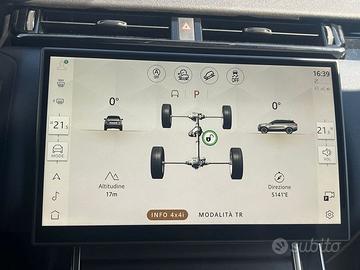 DEK:[9645155] EQUIPAGGIAMENTI OPTIONAL : Black Pack - Cerchi in lega da 20" a 10 razze "Style 1089" Gloss Black - Ruota di scorta di dimensione ridotte - Vetri oscurati EQUIPAGGIAMENTI DI SERIE : 6 airbags (Velar) - Android Auto - Apertura portellone posteriore elettrica (apertura/chiusura) - Apple CarPlay - Avviso cinture di sicurezza slacciate - Bluetooth connectivity - Cambio automatico a 8 rapporti - Cassetto portaoggetti con serratura - Cerchi in lega da 19'' a 5 razze "Style 5108" con finitura Gloss Sparkle Silver - Climatizzatore a 2 zone - Comando chiusura/apertura centralizzata presente sulla portiera del guidatore - Controllo della stabilità del rimorchio (TSA) - Controllo elettronico della trazione (ETC) - Copertura vano di carico - Cornering Brake Control (CBC, Controllo della frenata in curva) - Cruise Control Adattivo - DAB - Digital Audio Broadcasting - Differenziale aperto con Torque Vectoring by Braking - Dispositivo di Ausilio alla Frenata di Emergenza (EBA) - Dispositivo per Frenata di Emergenza - Dynamic Stability Control (DSC) - Fari a LED premium con luci diurne caratteristiche - Fari automatici - Fari con abbaglianti assistiti - Fari con livellamento automatico - Finestrini elettrici con chiusura\apertura one-touch - Finitura Dark anodizzata - Finitura Light anodizzata - Freni anteriori da 355 mm e posteriori da 325 mm - Freno di stazionamento elettrico (EPB) - Hill Descent Control (HDC) - Hill Launch Assist - Illuminazione interna d'ambiente configurabile - Impianto audio - InControl Remote - Indicatori direzionali posteriori animati - Interactive Driver Display - Interni standard - Keyless Entry - Lane Keep Assist - Low Traction Launch - Luci di avvicinamento (tramite telecomando) e luci di accompagnamento (follow me home) - Luci fendinebbia posteriori - Lunotto riscaldabile con timer - Maniglie delle portiere a scomparsa - Monitoraggio condizioni del guidatore - Online Pack con Data Plan - Palette del cambio Brogi e Coll