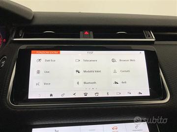 e dispositivo di sicurezza anti-intrappolamen;Finitura in alluminio Shadow;Freni anteriori da 350 mm (solo versioni 3.0 Diesel e versioni 3.0 Benzina);Freno di stazionamento elettronico (EPB);Hill Descent Control (HDC);Hill launch assist;Illuminazione interna;InControl Remote;Interni standard;Kit Riparazione Pneumatici;Lane Departure Warning;Low traction launch;Luci "follow me home";Lunotto termico con timer;Maniglie delle portiere a scomparsa;Parabrezza laminato acustico;Pedali in metallo lucidato;Piantone dello sterzo a regolazione manuale;Piastra protettiva in metallo per il vano di carico;Pneumatici All-Season;Poggiatesta anteriori passivi;Poggiatesta centale seconda fila;Portabicchieri anteriori e posteriori;Quadro strumenti analogico;R-Dynamic Exterior Pack;Rivestimento del padiglione Ebony;Rivestimento del padiglione in Morzine;Roll Stability Control (R