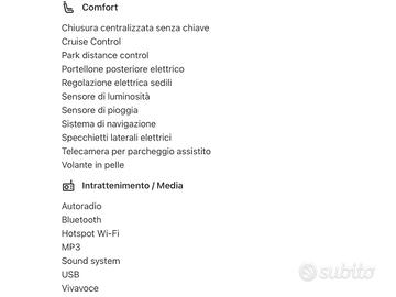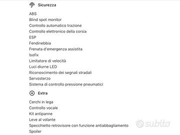 TOP SALES AUTOMOTIVE GROUP . VISITA NS SITO WEB TOPSALESAUTOMOTIVE.COM X NUOVE OFFERTE ( 150 AUTO DISPONIBILI ) VISITA NS SHOP AUTO SUBITO .IT X NUOVE OFFERTE ( 35 AUTO DISPONIBILI ) . LAND ROVER RANGE VELAR AUTOMATICA . 2.0 D I4 240 CV . SUV PERFETTA . NESUN INTERVENTO DA ESEGUIRE . BI - COLOR . TAGLIANDATA . TAGLIANDI CERTIFICATI . FULL OPTIONAL . VEDI DATI COMPLETI ALLEGATI . PER OGNI INFORMAZIONE CONTATTARE ORARI UFFICI NS STAFF COMMERCIALE.O LASCIARE VS RECAPITO TELEFONICO O E -MAIL SARETE RICONTATTATI A BREVE . ABS Airbag laterali Antifurto Chiusura centralizzata Fendinebbia Pretensionatore cinture Airbag per la testa Fari anteriori allo xeno (a scarica di gas) Riconoscimento segnali stradali Monitoraggio angolo cieco Fari adattativi Riconoscimento pedone Isofix Chiusura centralizzata senza chiave Sistema di chiamata d'emergenza Sistema di riconoscimento della stanchezza Airbag guida Airbag passeggero Chiave con transponder Controllo elettronico della stabilità Immobilizzatore Controllo elettronico della trazione Airbag per le ginocchia Controllo automatico adattivo della velocità Fari anteriori a LED Avviso del cambio di corsia Frenata automatica di emergenza Controllo elettronico della corsia Luci diurne LED Sistema di controllo pressione pneumatici Sistema di visione notturna Luci diurne Appoggiatesta posteriori Climatizzatore Correttore assetto fari Lavatergifari Retrovisori elettrici termici Ricircolo aria Sedili regolabili elettricamente Sospensioni autoregolabili Tetto apribile Vetri elettrici anteriori Volante regolabile Interni in materiale pregiato Vernice metallizzata Sensore luci Tetto panoramico Hill Holder Controllo automatico clima Sospensioni pneumatiche Volante in pelle Leve al volante Interni in pelle Cambio automatico Controllo automatico velocità Indicatore temperatura esterna Retrovisori elettrici Retrovisori ripiegabili elettricamente Sedile guida regolabile in