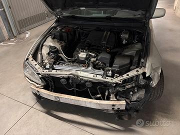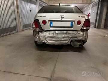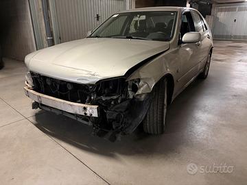Vendo Lexus is 200 incidentata Vendo la macchina intera, meccanicamente a posto sempre tagliandata ogni 10k km, longheroni e parti strutturali non sono stati danneggiati in quanto il danno maggiore é stato causato dallo scontro con un guard rail che ha attutito l’impatto. L’auto è del 2003 e ha 220k km usata tutti i giorni fino a tre settimane fa e recentemente per viaggi, zero ruggine, non perde nessun liquido, il radiatore é sano e si sposta con le sue ruote, inoltre la distribuzione é stata fatta 15k km fa. Ottima base per progetto pista, drift, o restauro.