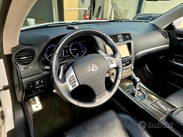 LEXUS IS 250 F-SPORT CABRIO/COUPE, anno di produzione 2013, importata in Italia nel 2021, Km 150mila, Motorizzazione 2.500cc V6 benzina, Colore bianco met., Interno in pelle totale nera, Finiture in carbonio, Pedaliera sportiva in alluminio, Cerchi da 18 nero lucido, Sedili sportivi completamente elettrici con memoria-ventilati-riscaldati, Cambio automatico 6m con palette al volante, Sistema di navigazione 3d con lettore cartelli stradali, Display touch screen da 7,5, Fari bixeno/led attivi, Voicetronic, Bluetooth, Parktronic con retrocamera, Sistema automatizzato apertuta capote anche in movimento, Programmi elettronici di guida, Impianto audio ampliato, Keyless access&go, Scarichi sportivi, Auto rarissima (solo 2 esemplari in Italia) in perfette condizioni, Garanzia legale 12 mesi, Possibile permuta ad eurotax blu, Possibile finanziamento