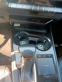Optional aggiuntivi copripomello lexus, poggiagomito con tasche laterale per cellulare, tappetini in gomma per i poggiabicchieri marchiati lexus.