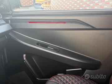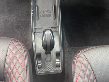 Sedili Premium in similpelle con cuciture color rosse e inserto poggiatesta Carbon Look firmato Ligier