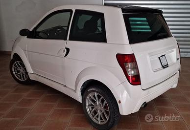 Carrozzeria bianca dal look sportivo, cerchi in lega e interni sportivi con sedili bicolore.