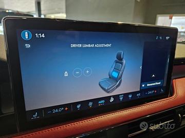Dotazione principale: Allestimento Reserve, telecamere 360°, portellone posteriore elettrico e apertura keyless con il piede, accesso ed accensione keyless, vetri privacy posteriori, sensore pioggia, barre portatutto sul tetto, luci d'ambiente, sedili anteriori riscaldabili e ventilati, regolazione sedili anteriore elettrica, supporto lombare elettrico, interni in pelle ebony red, carica smartphone wireless, apertura garage universale, climatizzatore bizona automatico, Lincoln CoPilot 360 2.1, sistema di navigazione Sync 4, allarme perimetrale, monitoraggio pressione pneuamtici, parabrezza riscaldato, volante riscaldabile, sensori di parcheggio anteriori e posteriori, tetto panoramico, Jet appearance package (pacchetto black).