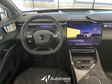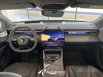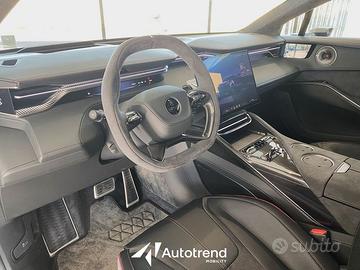 DEK:[9571700] LOTUS ELETRE S 612 CV AWD PRONTA CONSEGNA LOTUS BARI Autovettura dotata di: - Vernice metallizzata Nero Stellar - Cerchi a 5 razze da 23” nero lucido - Pinze freno rosse a 6 pistoncini (anteriori) - Pacchetto carbonio esteso Spoiler a labbro anteriore inferiore, pannelli centrali decorativi del paraurti anteriore, pannelli inferiori decorativi del paraurti anteriore, calotte specchietti laterali, pannelli decorativi per cofano, diffusore posteriore inferiore, pannelli decorativi del paraurti posteriore, estensioni del passaruota e pannelli decorativi portiere. - Pacchetto sedili executive Configurazione per 4 sedili, estensione seduta sedili anteriori, poggiatesta elettrico (2 posizioni) per sedile anteriore, regolazione sostegno laterale (4 posizioni), sedili anteriori ventilati, sedili massaggianti anteriori (6 modalità), ancoraggio seggiolino per bambini sedili posteriori, bracciolo sedile posteriore, portabicchieri sedili posteriori (2), vano portaoggetti sedili posteriori, sedili posteriori singoli, regolazione schienali posteriori (airbag 2 posizioni), pulsante supporto lombare (4 posizioni), pulsante regolazione schienale posteriore (4 sedili), pulsante regolazione sedili posteriori per inclinazione della seduta e inclinazione in avanti e all’indietro dello schienale, poggiatesta posteriori integrati, sedili posteriori riscaldati e ventilati, massaggio sedili posteriori e display tft sedili posteriori da 9”. - Volante in microfibra e carbonio - Pacchetto interni in fibra di carbonio Pannello consolle, pannello interruttori sulle portiere, pannello interruttori sedili, pannello comandi luci interne, pannello decorativo schienale sedili - Telecamere laterali - Tetto in vetro intelligente con 10 gradi di oscuramento - Pacchetto di gestione dinamica Lotus, Controlli antirollio intelligente Lotus e ruote posteriori sterzanti (3,5 gradi in controfase fino a 40km/h, 1.5 gradi in fase ad alte velocità) - Pacchetto assistenza autostradale