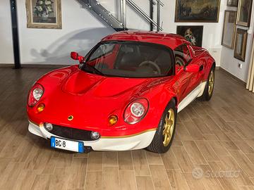 Splendido esemplare da collezione di Lotus Elise S1 Type 49 (rara versione celebrativa “Gold Leaf”). Ufficiale italiana lhd , circa 26.000 km originali, targhe originali, mastici rossi corretti, ammortizzatori Koni di primo equipaggiamento, prima vernice ancora da lucidare (il detailing verra’ eseguito dopo la vendita solo se richiesto) , certificato di rilevanza storico (CRS) . Carpetta completa di libretto tagliandi , depliant, uso manutenzione ecc, tutti i vetri sono di primo equipaggiamento marchiati 99 , hardtop gullwing (molto comodo per entrare ed uscire) , capote in tela disponibile, maxi tagliando appena eseguito comprensivo di cinghia distribuzione (disponibile fattura febbraio 2026) . Una delle 44 prodotte in versione Type 49 (guida a destra + guida a sinistra , 90 invece nella versione S) Optionals : Scarico Janspeed con un sound fantastico