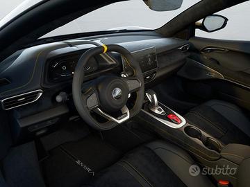 Climate control, Twin cup holders, 12 way adjustable seating included 2 memory functions (seat & mirrors), Central armrest and storage compartment, Heated seats, Black Leather Steering Wheel, Electric folding door mirrors, Powerfold mirrors, Keyless go, Black alcantara headlining, KEF Premium Audio (560w), Satellite navigation (Market specific), 7-speaker speaker audio system (128w), 12.3" TFT instrument display, 10.25" HMI touch screen, 20" V-spoke ultraleggeri argento, 1x Type-C port, 2x USB ports, 12v Power Socket, Apple Car Play / Android Auto compatible, Pinze freno nero, LED automatic headlights, Interni in pelle nappa black, Lotus design pack, Lotus drivers pack, Cruise Control, Tyre Pressure Monitoring System (TPMS), Two-piece brake discs, Rear Parking Sensors, Tour and sport drive modes, Pinze freno Giallo, Vetri Privacy, Interni in alcantara nero con cuciture gialle, Scorpion S5 tracker,