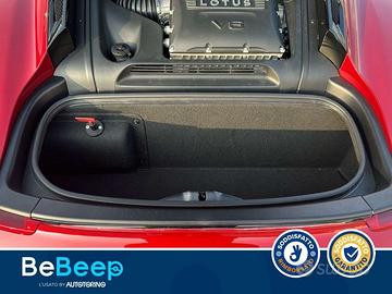 La vettura è completa nella dotazione optional di Apple Car Play / Android Auto, Black Pack inferiore Gloss Black, Bracciolo centrale, Cambio Automatico a 6 rapporti, Cruise Control, Dischi freno Sport a doppio componente, Fari a LED, Interno in Alcantara nero con cuciture a contrasto (Silver, Rosso o Giallo), Keyless Starter (Avviamento senza chiave), Lotus Design Pack, Lotus Driver Pack, Luci ambientali interne (Bianco lunare), Pinze freno con Logo Lotus, Radio DAB, Ruote forgiate ultra leggere design V a taglio diamante, Scarico in Titanio, Sedili elettrici a 12 regolazioni con 2 memorie, Sedili riscaldabili, Sensore crepuscolare accensione luci, Sistema Bluetooth per telefono e streaming audio, Sistema di navigazione, Sound System KEF a 10 altoparlanti 340W, Specchi esterni riscaldabili e