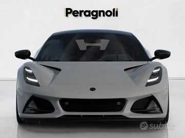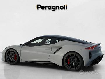 Airbag, Badge Lotus Nero e Argento, Bluetooth, Cambio Aut. Doppia Frizione 8 Rapporti, Cerchi in lega ultraleg.a V da 20" Grigio satinato, Cinture di sicurezza: rosse, Climatizzatore, Colore esterno vernice: Zinc Grey, Convenience Pack, Cruise Control, Dischi freno Forati e Ventilati 2 componenti, Finiture Interne Alcantara Nero Cuciture Rosse, Pacchetto co-driver, Pacchetto Full Black, Pacchetto Lotus Driver con Sospensioni Sportive, Park Distance Control, Pedali sportivi, Pinze Freno in Colore Rosso, Pneumatici Michelin Pilot Sport Cup 2, Rivestimento tetto interno: Alcantara Nero, Sedili sportivi con 12 regolazioni elettrici, Sistema di navigazione, Tappetini Premium, Vetro privacy, Volante in Alcantara Nero Cuciture Rosse