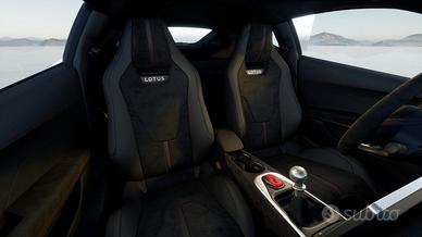 Cambio Manuale a 6 Marce, Cerchi in lega da 20" 15 razze nero lucido, Cinture di sicurezza: Nero, Colore Accento Racing Line: Rosso, Consolle Centrale con Ghiera Cambio a Vista, Convenience Pack, Dischi freno Forati e Ventilati 2 componenti, Finiture Interne Alcantara Nero Cuciture Rosse, Pacchetto Accenti Racing Line Esteso, Pacchetto Extended Co-Driver, Pacchetto Extended Lower Black, Pacchetto Lotus Driver, Pacchetto Lotus Driver con Sospensioni Sportive, Pedali sportivi, Pinze Freno in Colore Rosso, Pneumatici Michelin Pilot Sport Cup 2, Rivestimento tetto interno: Alcantara Nero, Sedili sportivi con 12 regolazioni elettrici, Sistema di navigazione, Tappetini Premium, Vernice Esterna: Meridian Blue, Volante in Alcantara Nero Cuciture Rosse