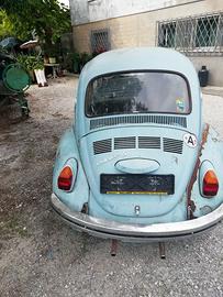 wolksvwagen maggiolino 1302 s cilindrata 1600 ,anno immatricolazione 1972 completa a parte seduta sedile posteriore .l auto ferma in un magazazzino per anni si accende ma necessita di restauro ,carrozzeria esterna presenta solo un po di ruggine superficiale mentre nel fondo necessita di una ripresa nella zona batteria.