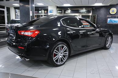 Ghibli V6 diesel con cambio automatico e paddle al volante, cerchi in lega da 20”, pinze dei freni rosse, dischi dei freni forati, fari anteriori bi-xenon, keyless, vetri posteriori oscurati, portellone bagagliaio azionabile elettricamente, sensori di parcheggio anteriori e posteriori, telecamera posteriore, specchietti esterni richiudibili elettricamente, sedili sportivi rivestiti in pelle regolabili elettricamente con funzione memoria e supporto lombare, sensore luci anabbaglianti, avviamento tramite pulsante, volante multifunzione in pelle, display touch centrale, Apple CarPlay e Android Auto, bluetooth, navigatore, presa USB, climatizzatore automatico bi-zona, orologio Maserati collocato al centro plancia con fondello blu e finiture cromate, cruise control e limitatore di velocità, modalità sport e I.C.E., ISOFIX, doppi terminali di scarico cromati, Maserati Active Sound (sistema sonoro attivo degli scarichi), sensori pressione pneumatici, start & stop, ecc.
