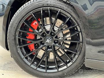 ° IMPIANTO FRENANTE MAGGIORATO CON PINZE ROSSE E LOGO MASERATI E DISCHI FORATI PER MAGGIORE DISSIPAZIONE CALORE